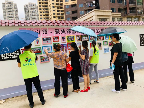 活动开始后,居民们按照活动要求纷纷挑选自己心仪的照片,并分享到微信群。社工征集到近200张原创摄影作品并从中臻选30张优秀作品,展现在社区文化长廊上。照片有居民在打太极、练舞、小朋友玩耍等等,充分展示了居民在社区的幸福生活,吸引的过往行人驻足围观。