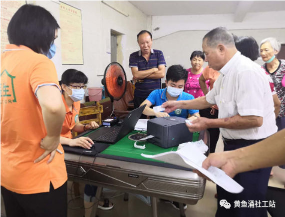 2020年7月17日,黄鱼涌村委会、社工站联合大亚湾澳头医院开展健康义诊活动,为社区符合条件的居民免费体检。