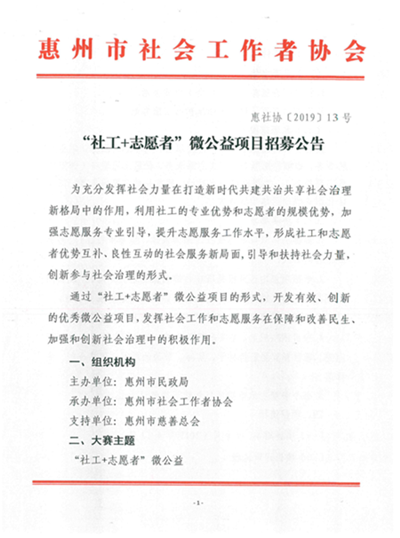 惠社协〔2019〕13号“社工+志愿者”微公益项目招募公告