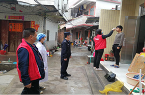 在活动中社工联合盐洲疫情防控工作组人员与志愿者在对进入社区的车辆人员测量体温、派发传单并告知一定要佩戴好口罩,做好防范措施,尽量少出门、少接触,对于外来人员进行劝回等疫情警戒解除后在进入社区。