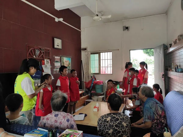 此次小组共六节,服务人次达64人次。小组第一节通过游戏的形式,打破组员间的隔膜,促进组员间的相互认识。社工还和组员一起订立小组目标和确立小组规范。第二节通过游戏“非语言交流”“同理心”培养组员的沟通意识,掌握良好的沟通技巧。第三节,先让组员分享对志愿者的认识和在家里与长辈交流时的不同感受。然后通过聆听技巧的训练,让组员学会倾听的技巧,并使得他们懂得在与老人沟通如何去聆听。最后,与组员一起商量入户探访时表演的节目,并让他们回家准备。第四节,经过组员与社工的彩排后,部分组员产生节目分歧,协调后,组成两个表演节目:一个朗诵、一个唱歌。第五节,组员进行节目彩排的同时,各自还交流了做义工需要的心理准备和如何与老人家沟通交流。帮助组员梳理情绪,做好义工的充分准备。第六节,社工提醒组员在与老人沟通的注意事项,对组员的能力提升进行表扬,提升他们入户探访的热情。在社工的引导下,顺利完成了此次探访服务。