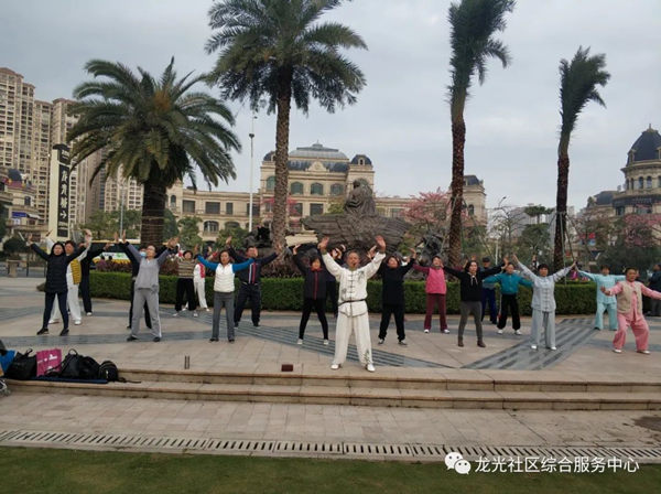 为积极抗击疫情,提高社区长者的健康水平,增强体能、预防疾病,2020年12月7日上午,龙光社区综合服务中心联合惠州大亚湾区武术协会开展了“气功八段锦,延年又益寿”活动。特别邀请了武术协会的左保全老师来到现场授课,社区20名长者参加了此次活动。