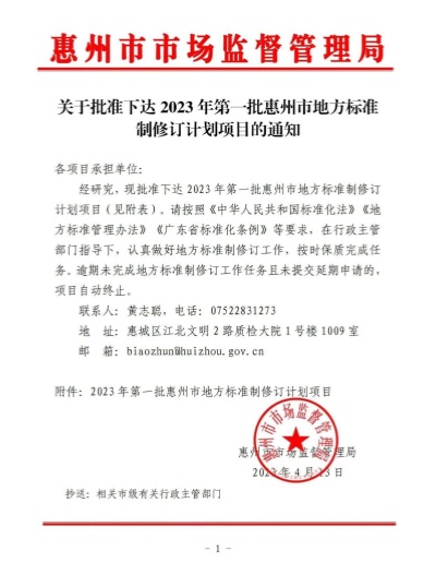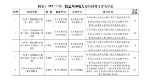 喜讯 | 热烈祝贺我机构作为主导单位、参与单位等制定的多个标准化项目成功入选2023年第一批惠州市地方标准制修订计划项目
